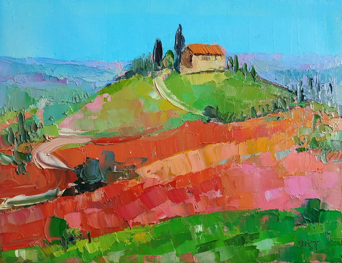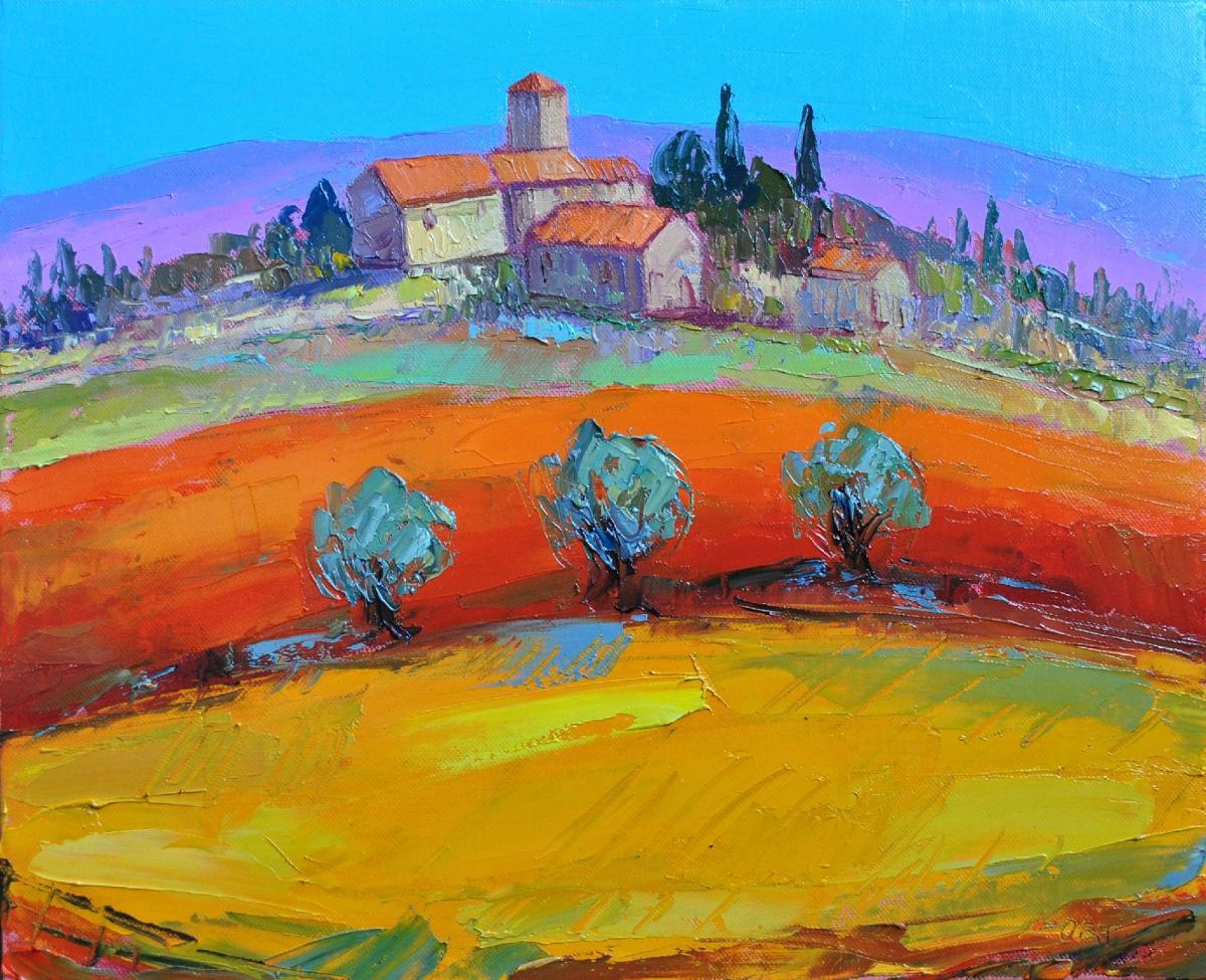 Ci sono due tipi di paesaggi che preferisco: il primo è la natura nelle sue forme essenziali, come la terra, l'acqua e il cielo, dove l'impronta umana è completamente assente o quasi. Il secondo è la vista dei villaggi con le sue antiche architetture del passato. Questa serie di paesaggi ha due connotazioni differenti: una parte di questi paesaggi ha uno stile di pura immaginazione essi sono tratti da un disegno puramente inventato, mentre gli altri sono tratti da un disegno che riflette la realtà o da un immagine ricavata da una fotografia del luogo.