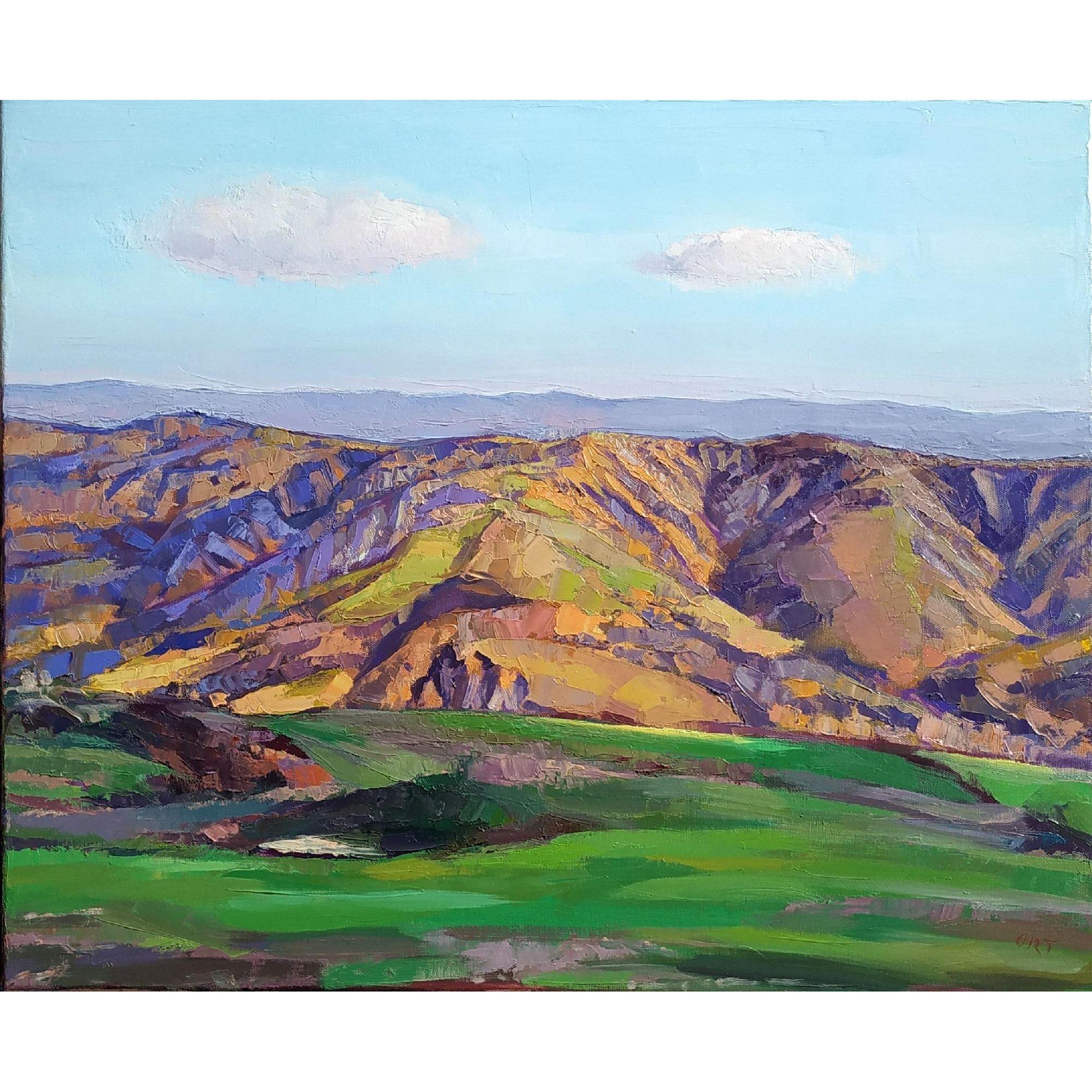 cerco di rivivere con la pittura l'emozione di stare di nuovo in questo paesaggio fantastico; le crete senesi sono un tipico paesaggio unico nel suo genere in toscana vicino alla città di Siena.