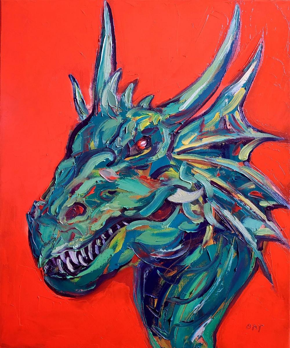 Per la serie Angeli e Demoni i mondi non visibili, Il Drago la bestia della quarta dimensione che controlla il destino dell'uomo e dell'umanità. Pittura originale ad olio su tela preparata.