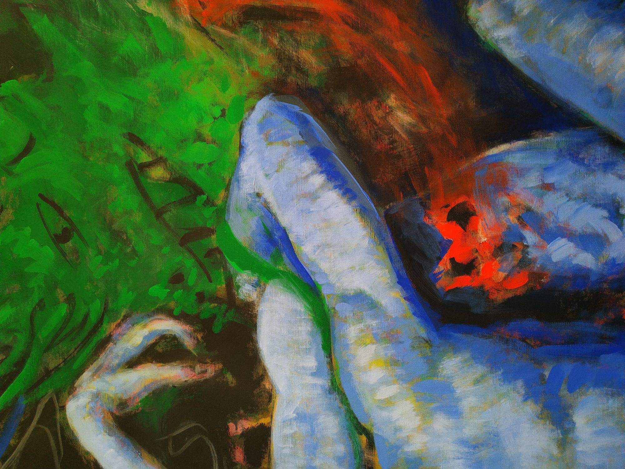 Opera originale spedita arrotolata in un tubo, pittura acrilica su tela. "Cerco di mostrare la parte inconscia del essere umano, quello che stà dietro e non si vede; mostro il non visibile e percepisco che è realtà, una realtà maggiore di quella che pensiamo che sia." L'artista mostra come l'essere umano è attaccato da entità arcontiche che ne controllano e manovrano la sua esistenza, attraverso la "parassitazione" della mente e del corpo. L'essere umano è vittima inconsapevole della manipolazione che operano come disconosce la sua vera identità.