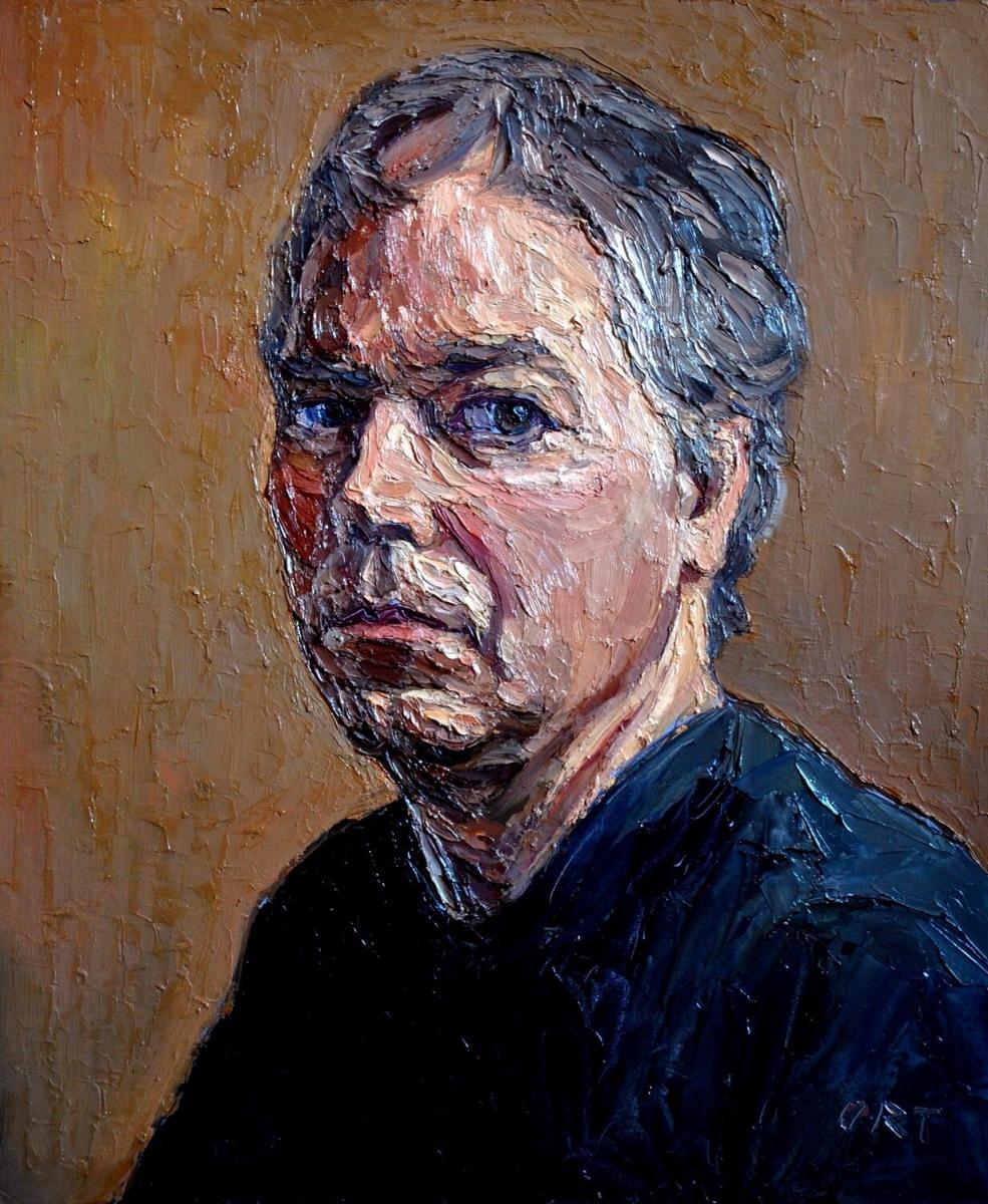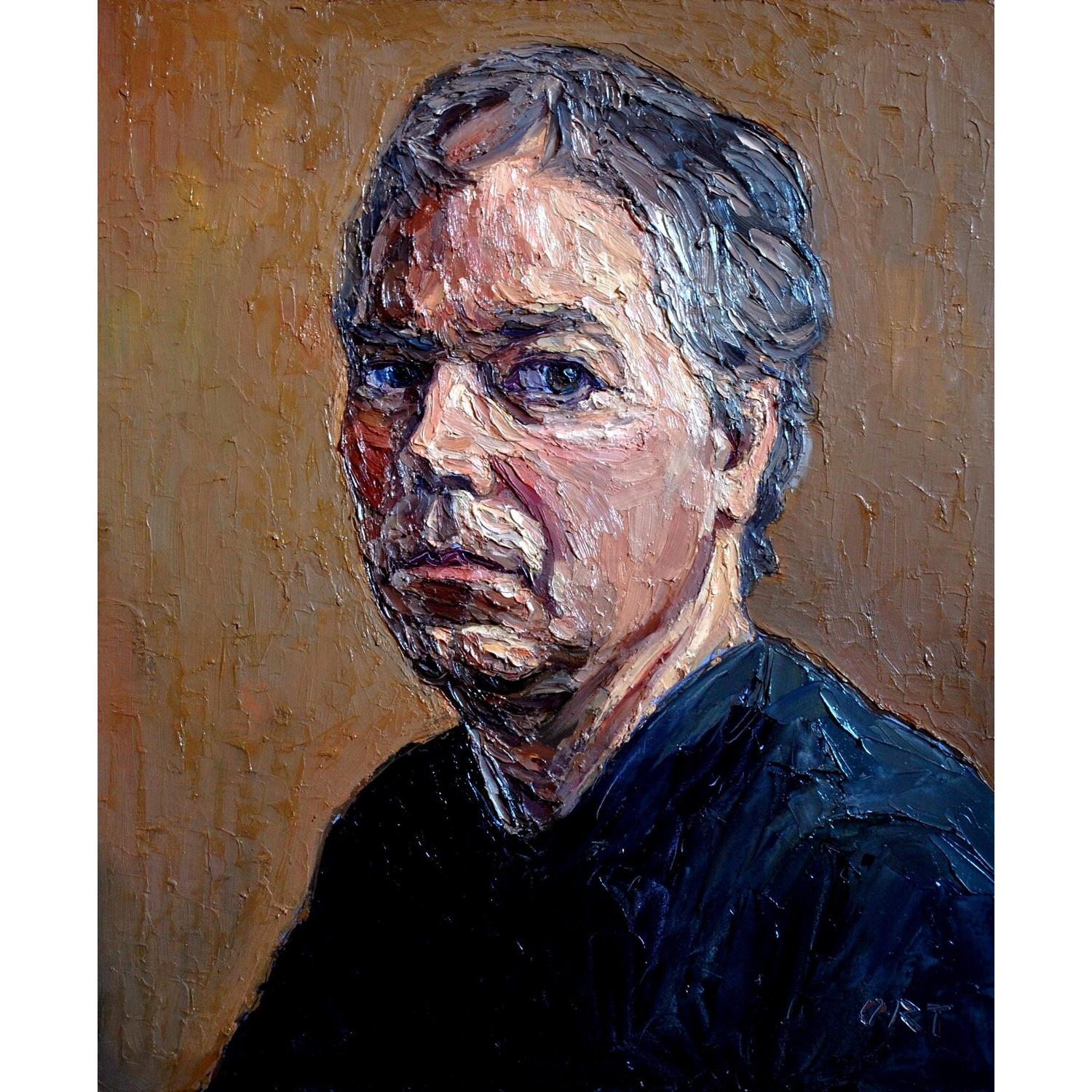 Autoritratto a olio su tavola di legno. L'autoritratto è un momento di auto analisi interiore e riflessione su se stessi, questo autoritratto ha un impostazione classica mi ricorda la storia degli autoritratti di Rembrandt e più in particolare quelli di mio padre.