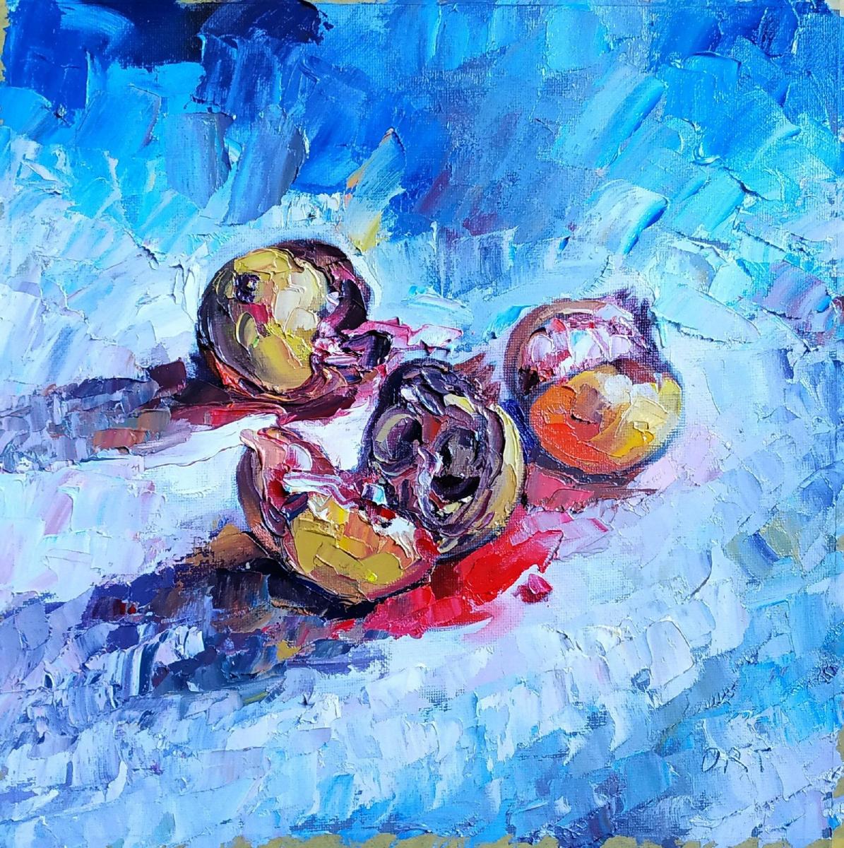 The pomegranate, archetype of initiatory knowledge: it is the most symbolic fruit par excellence in history.Oil painting on prepared canvas cardboard.